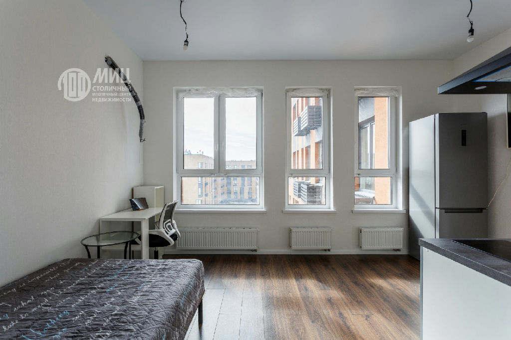 Уникальная студия с тремя окнами. Это не узкий длинный пенал, это отличная квадратная квартира с гардеробной 3 кв м. В неё поместиться всё, а в комнате будет просторно.